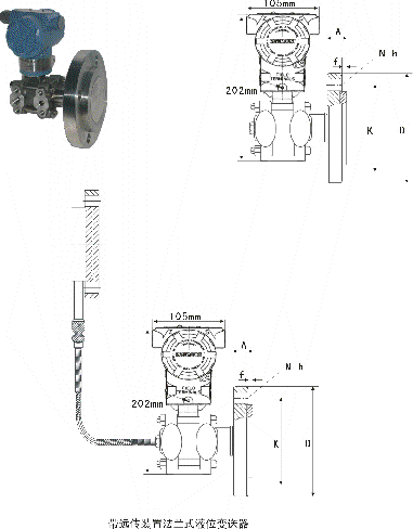 AK-3051LT液位變送器是一種直接安裝在管道或容器上的現場變送器。由于隔離膜片直接與液體介質相接觸,無須將正壓側用導壓管引出,因此可以測量高溫、高粘度、易結晶、易沉淀和強腐蝕等介質的液位、壓力和密度,然后將其轉換成4~20mA.DC信號輸出。 Lt型液位變送器采用標準的法蘭進行安裝聯接。 |