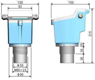 三、外型安裝尺寸(探頭尺寸會(huì)根據(jù)換能器量程的不同而有所改變,若有不同會(huì)預(yù)先告知)